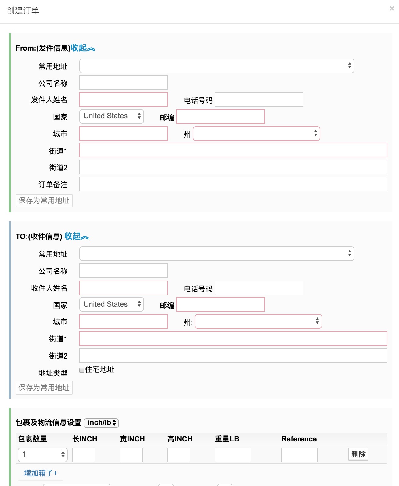 • 根据表单填写From发件地址和To收件地址,以及包裹信息后保存。